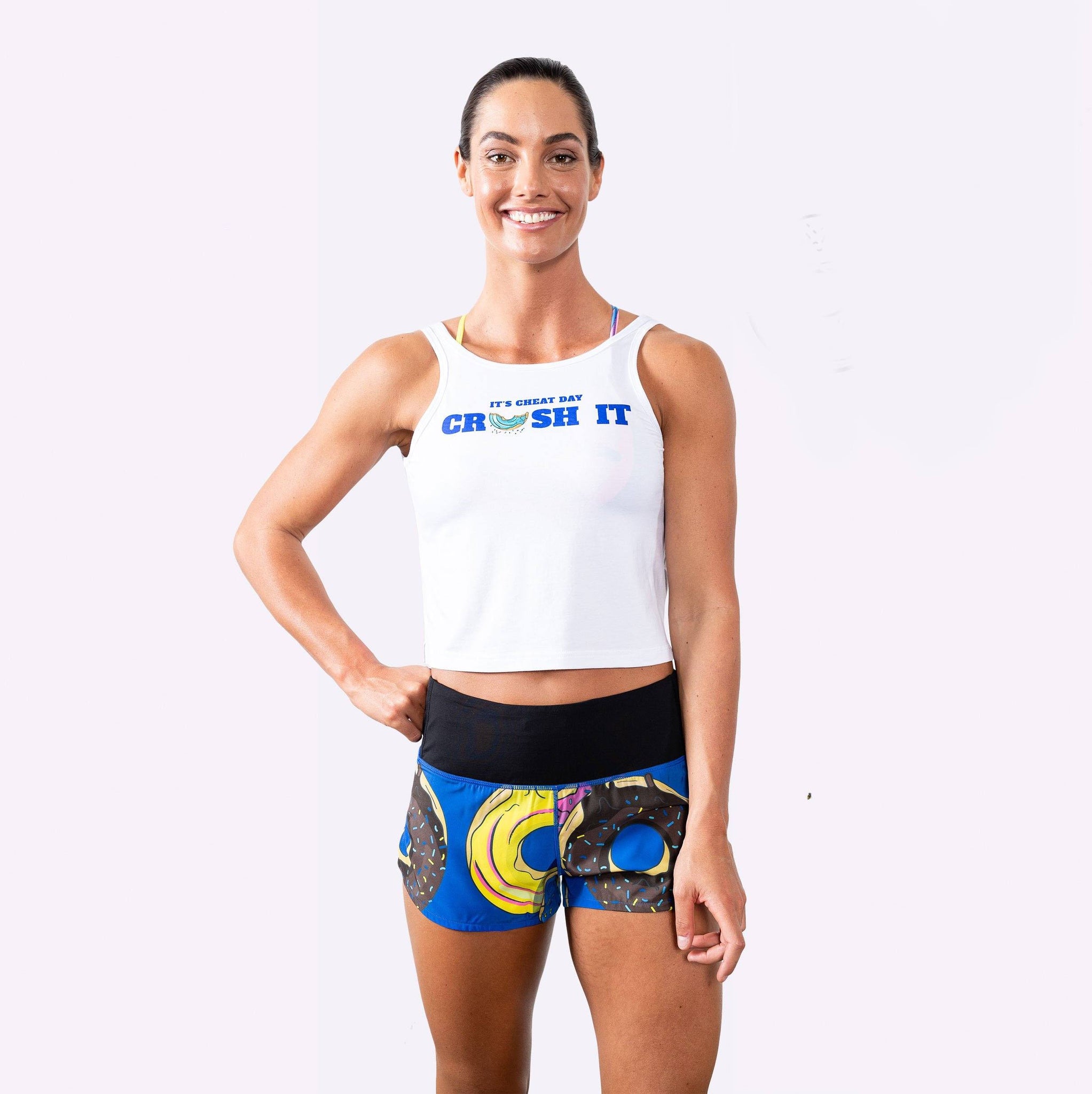 The Swing Crop Tank is the perfect length to pair with any bottoms, but looks especially great with the Cheat Day Motion Shorts or Cheat Day Balance Shorts.